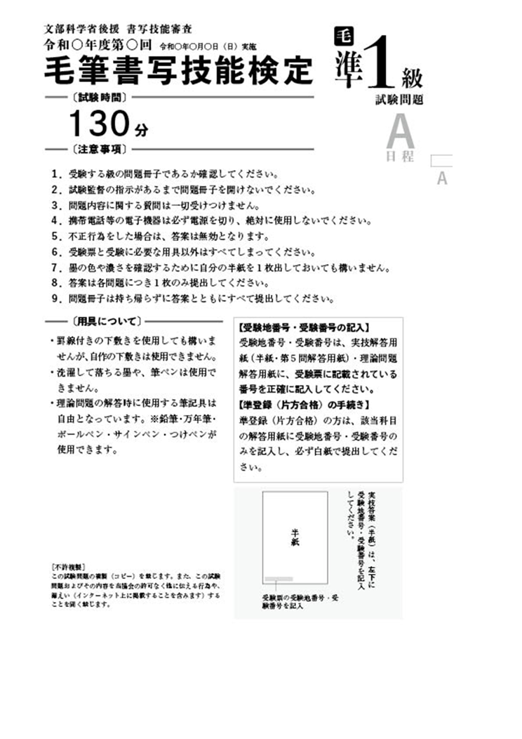 毛筆書写技能検定 準1級過去問題 1回分