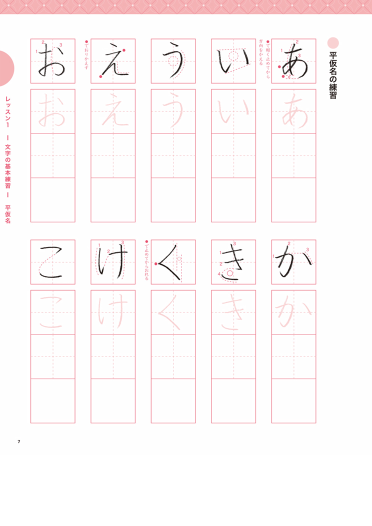 漢字とひらがなの練習ができる基礎練習遍を掲載しています。
