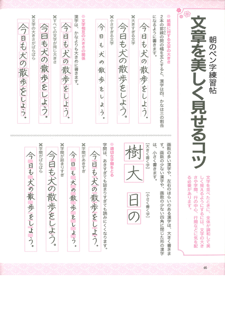 この本は、きれいで読みやすい文字の書き方や配列法を、30日間で効率よく学習することを目指して、つくられています。