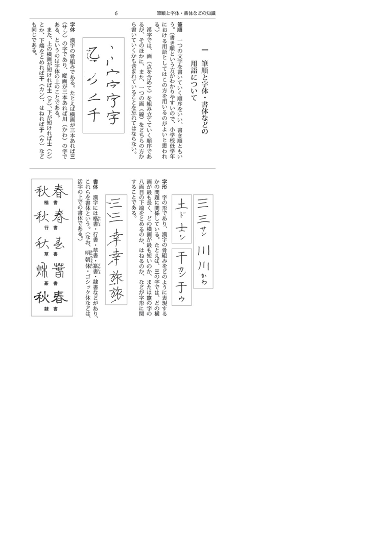 ・常用漢字を含む2669字に毛筆による楷・行・草三体を付す。