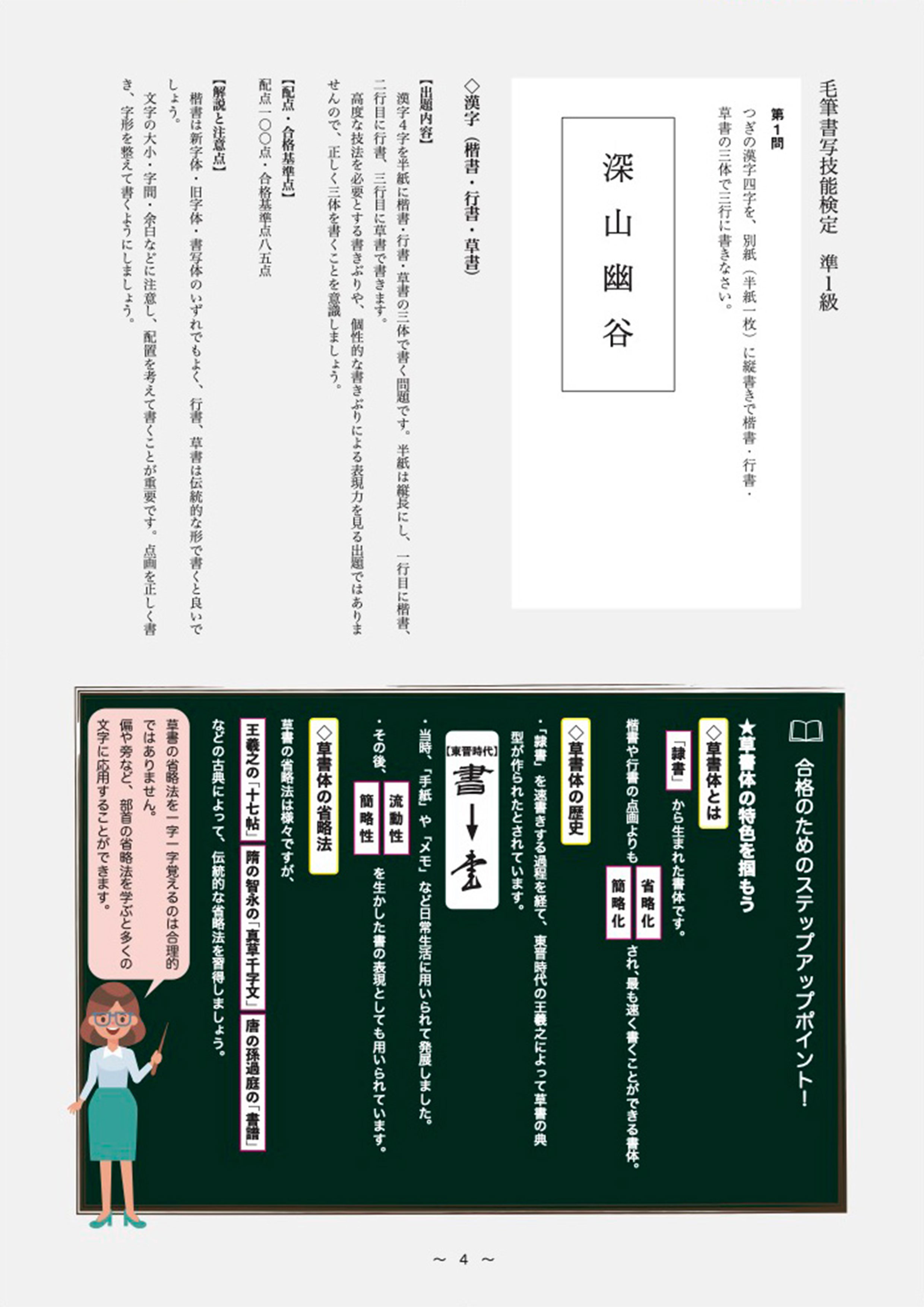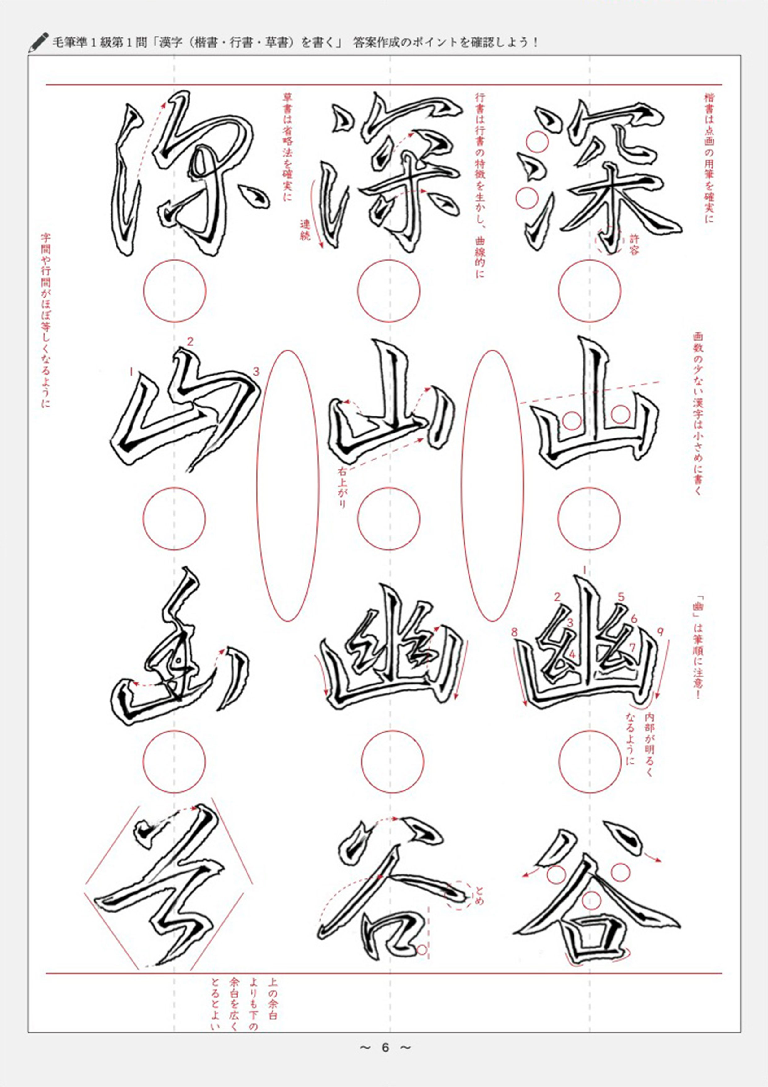 毛筆書写技能検定準1級 合格のための実物大手本