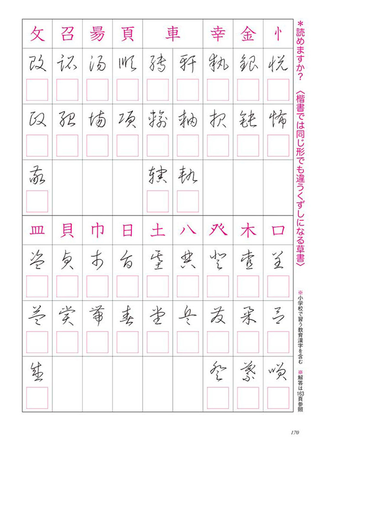 ・中学校で学ぶ1,130字全てに楷書の筆順を示す。